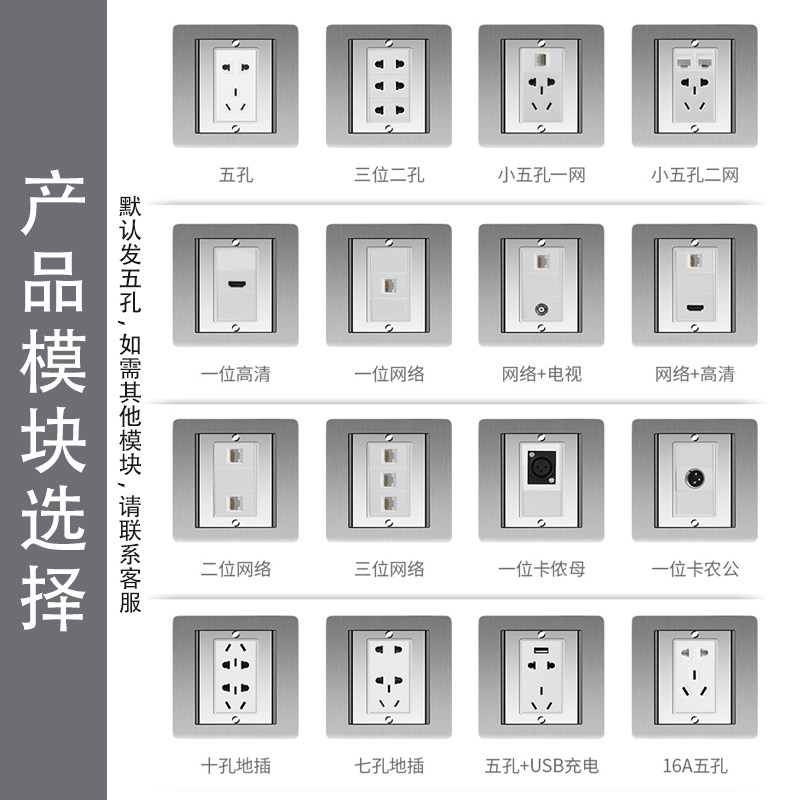Five-hole ground plug (thin) single network (thin section) Two-bit network (thin section) Five-hole network (thin section) Telephone network (thin section) Five holes to plug in (thick section) ten holes (thick section)
