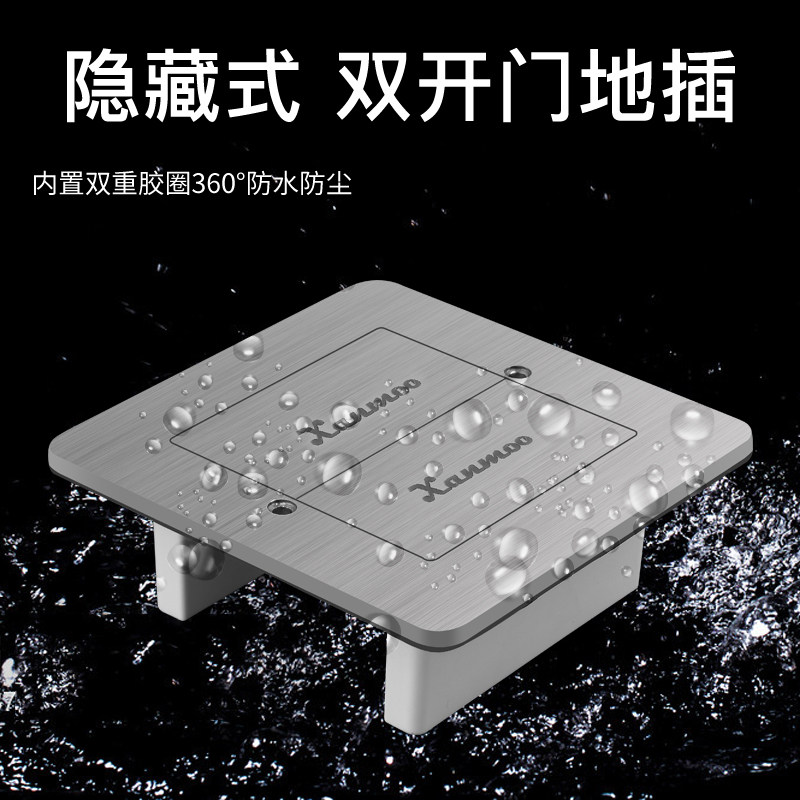 Ground plug Double open door concealed waterproof abrasion resistant stainless steel grey power ground socket floor 5-hole ground socket-Taobao