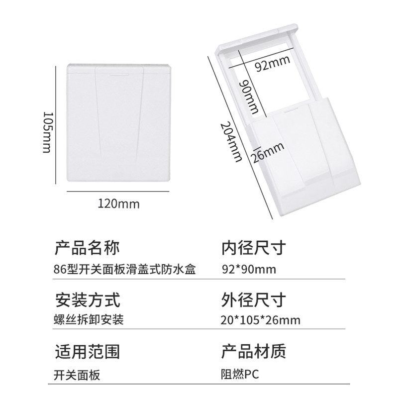 Slide cover waterproof box type 86 push down waterproof cover bathroom bath master switch socket sliding waterproof cover ultra-thin