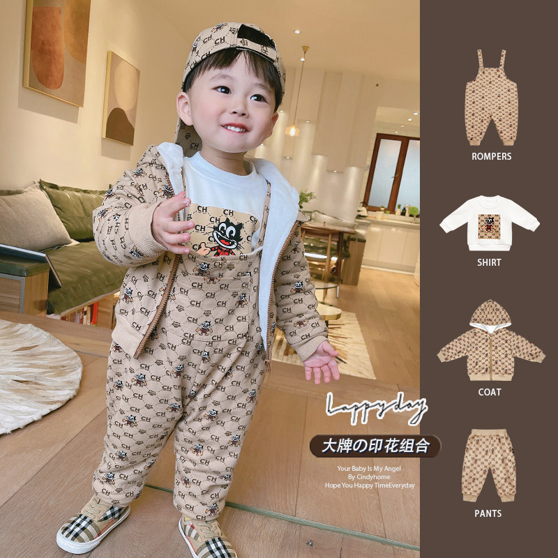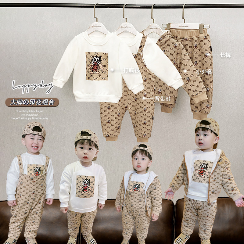 Cartoon Autumn Winter Clothing Boy Pure Cotton Fever Sweater Pants Foreign Palate Thickened out of children 100 Lap Clothes Tide