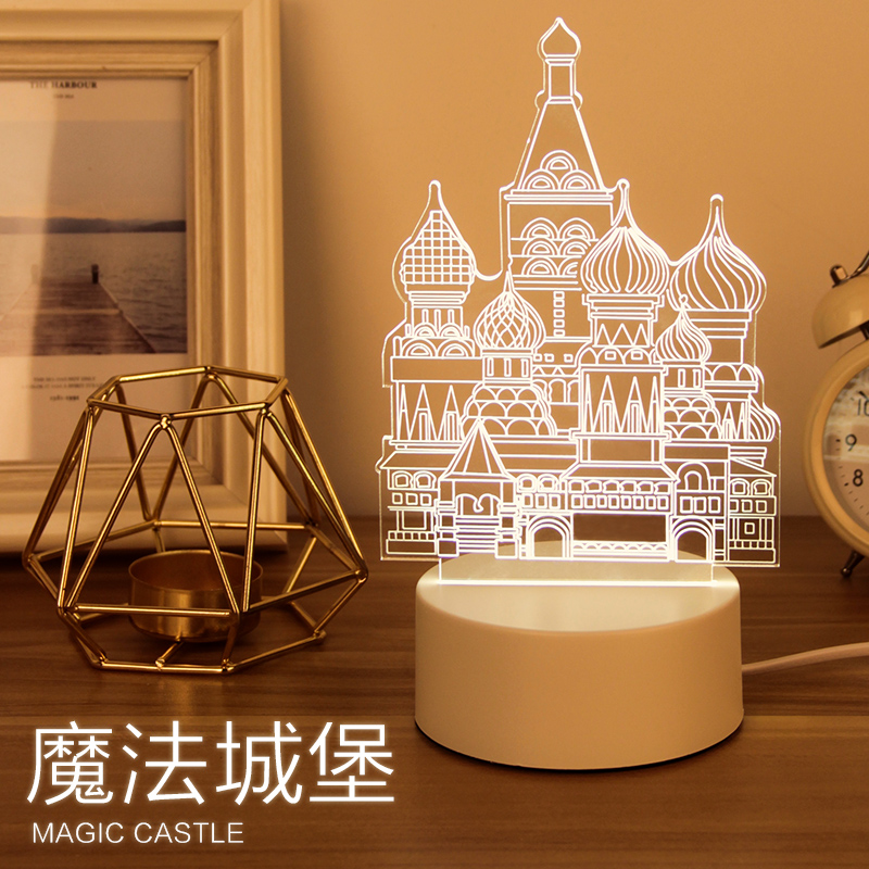 Room warm glowing creative modern ornaments 3D night light girl children's bedroom bed head radio lamps