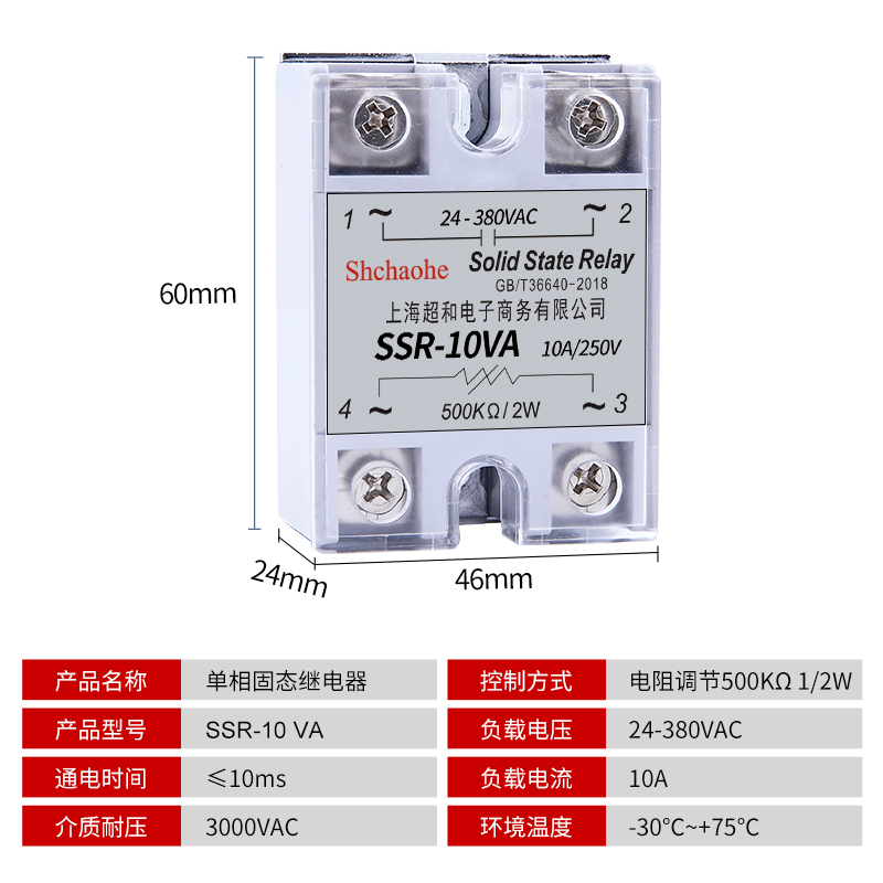 VA AASSR-AA VA40a single-phase 100a solid state relay 220V DC control AC 24V module 60A