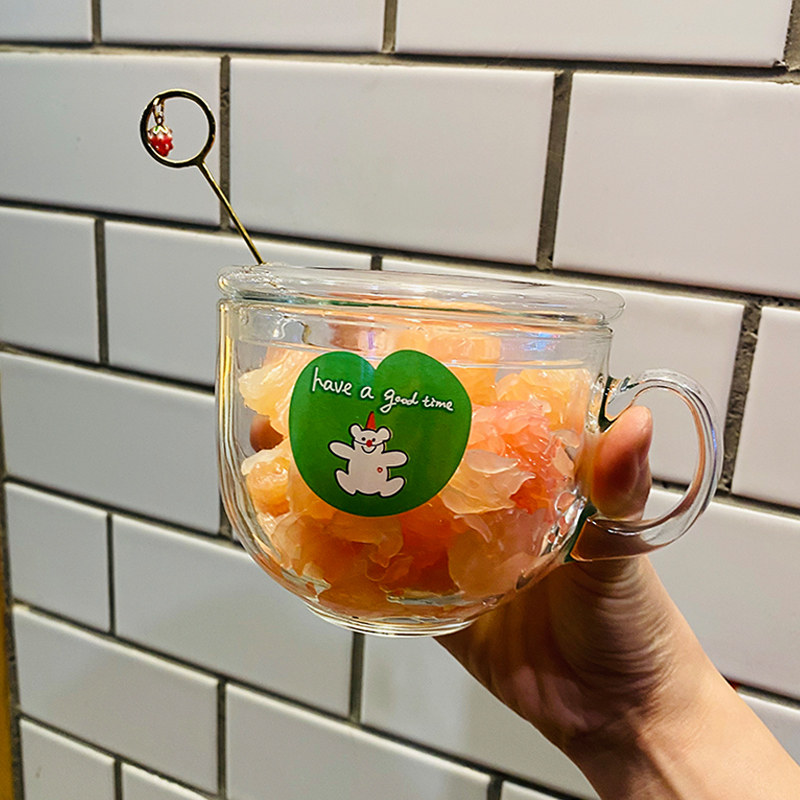 Heavy glass large capacity printed milk cup cereal cup cartoon daily drink water handle cup transparent cup
