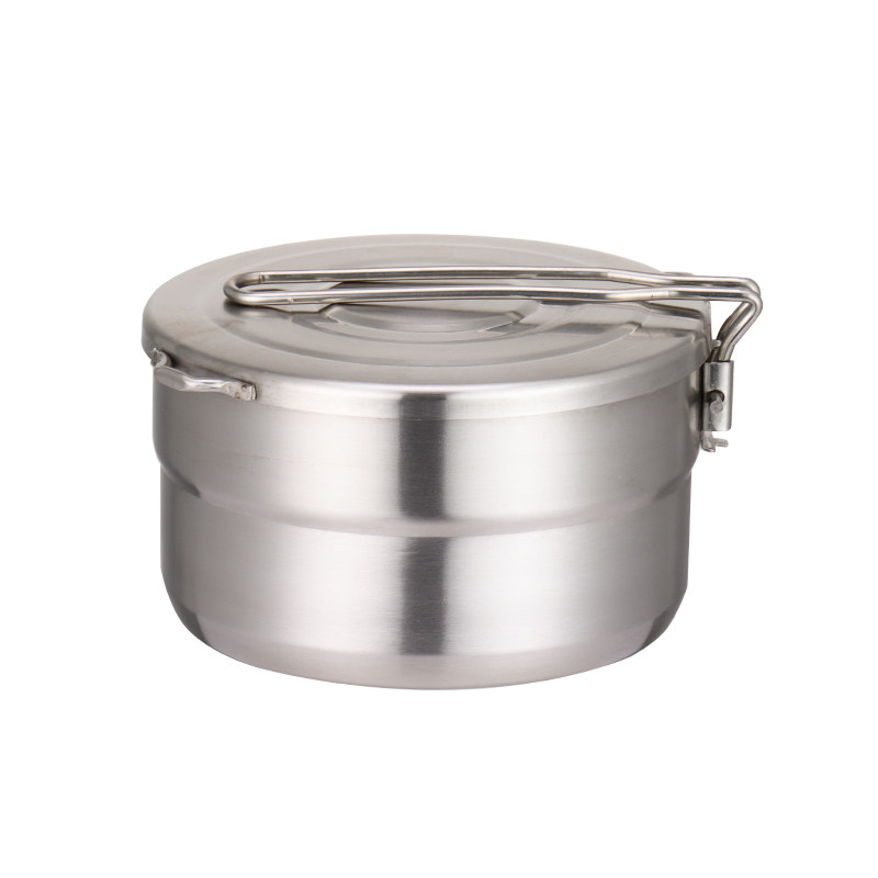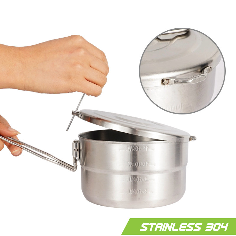 Outdoor Camping 304 stainless steel Lunch Pan Barbecue Portable Mountaineering Cover Pan Folding Handle Picnic Cooking Pot