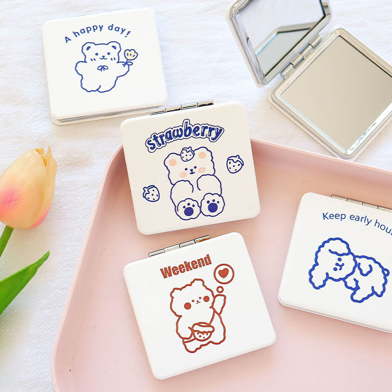 Korean in Puppy Dog Double - faced mirror cute girl heart with makeup mirror cartoon folding student micromirror