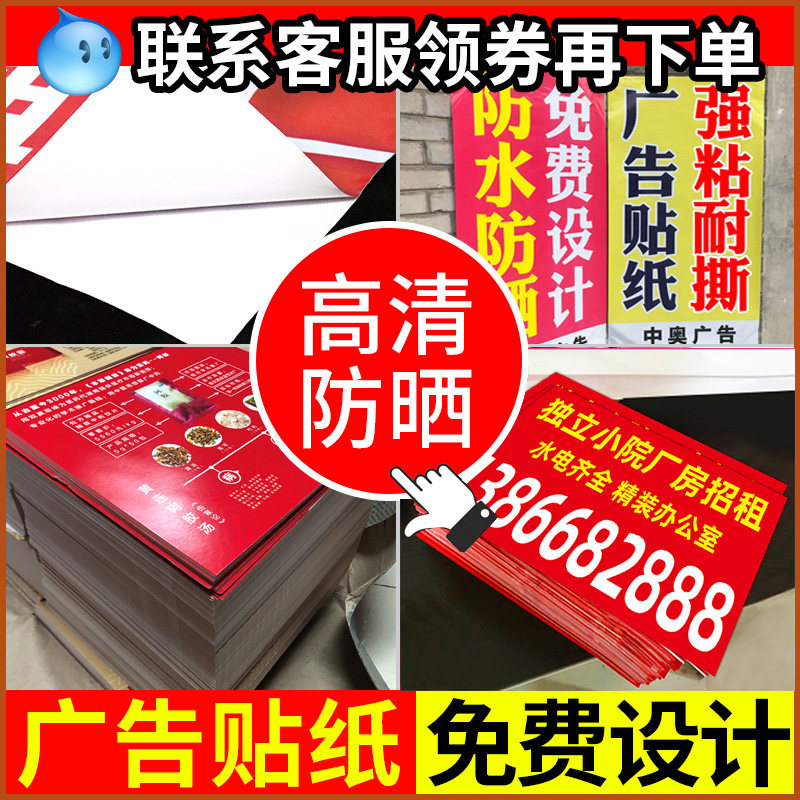 Outdoor Small Advertising Sticker custom text Self-adhesive poster print Adhesive Labels Paper Waterproof Sunscreen Back Glued wall stickers for poster stickers Promotional Sticker Billboard Stickers