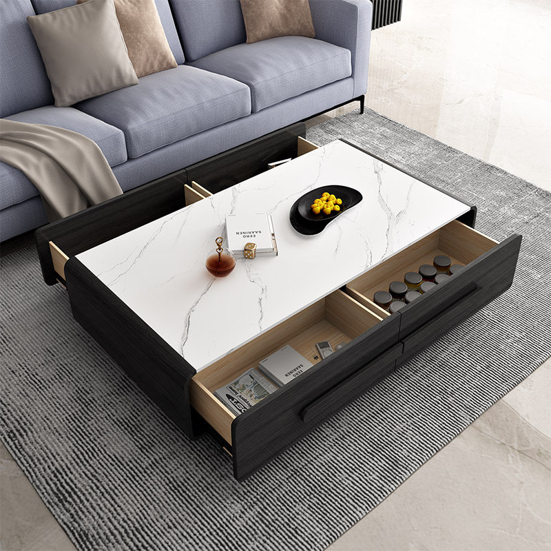 Slate coffee table TV cabinet combination modern minimalist telescopic slate TV cabinet 2021 new style coffee table black furniture