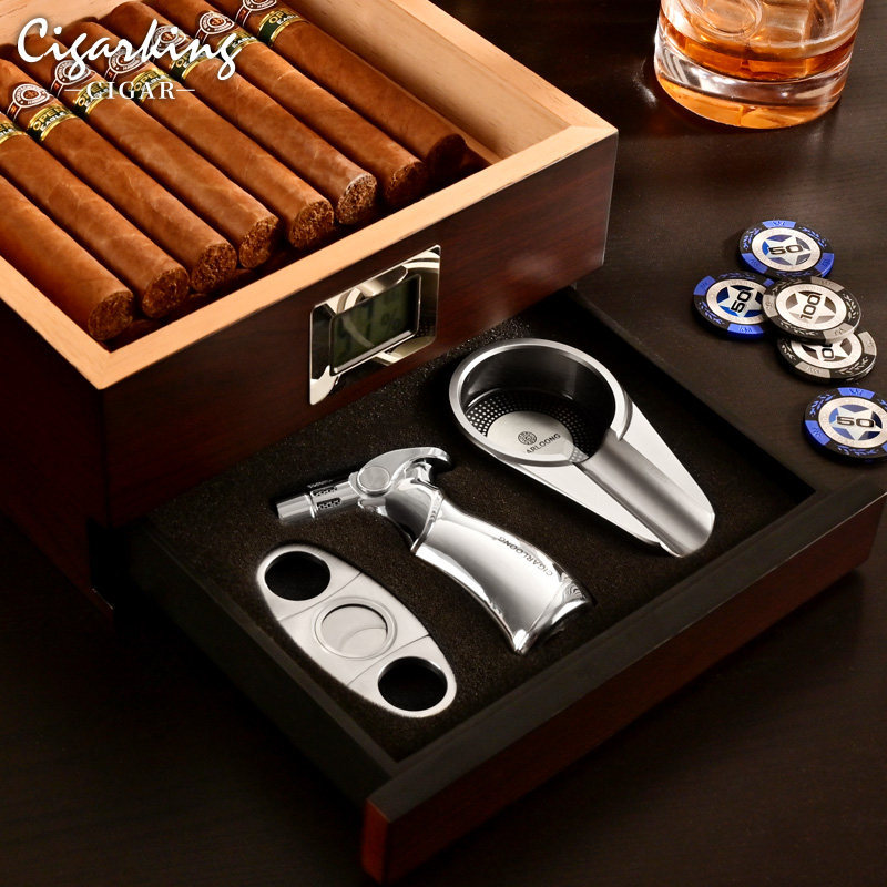 Cigar box imported cedar wood cigar box professional sealed large-capacity storage double-layer cigar humidor set