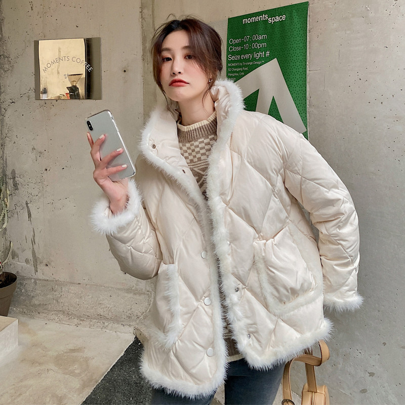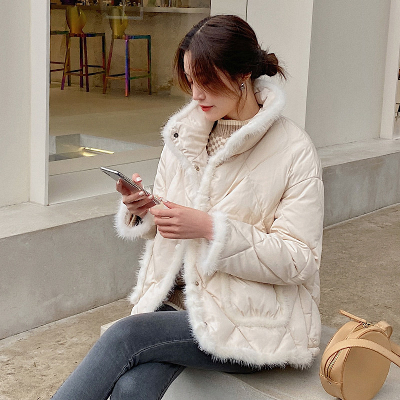 2022 white short thin down jacket women's small mink fur stitching small stand collar white duck down jacket winter