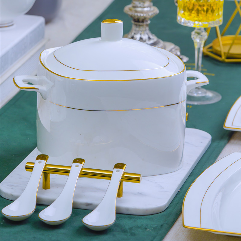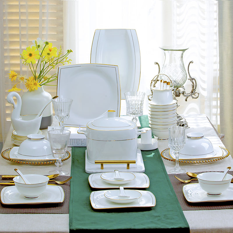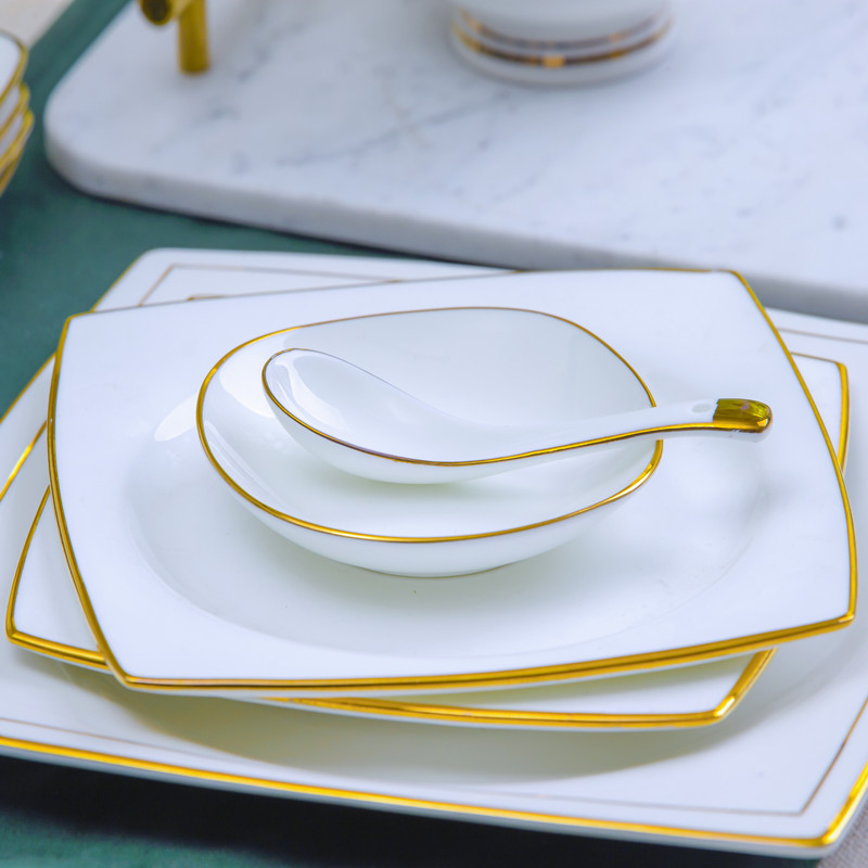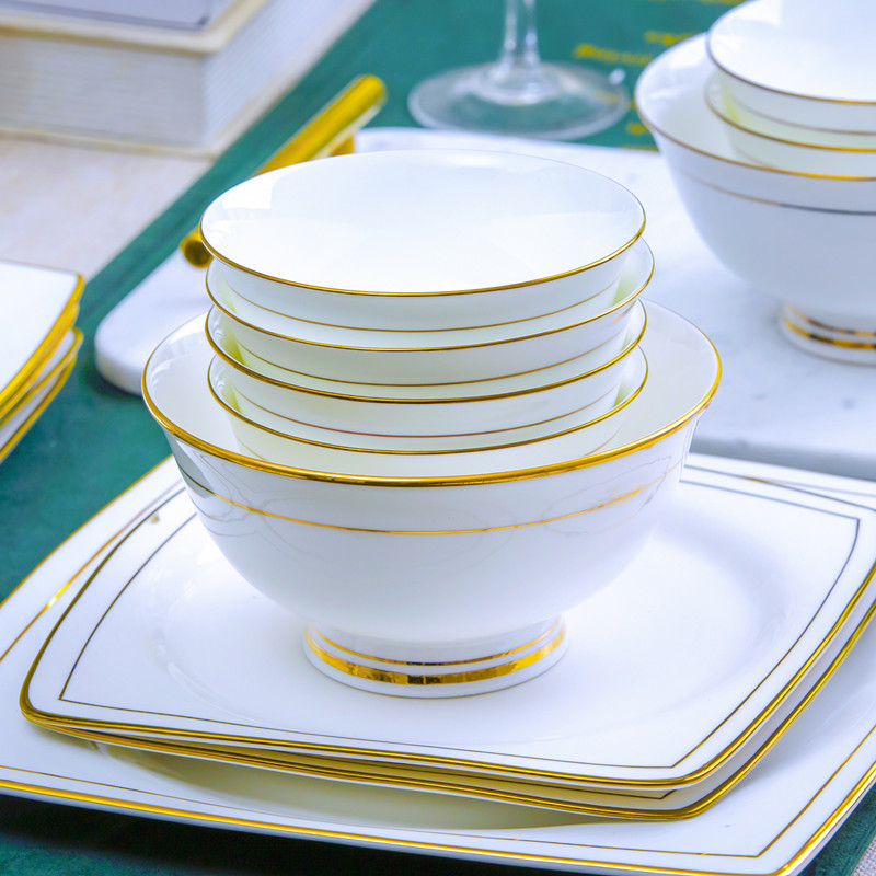 Phnom Penh Bone Porcelain Bowl dish suit Home Jingdezhen Ceramic cutlery modern minimalist light and luxurious Bowl Plate Combined Square