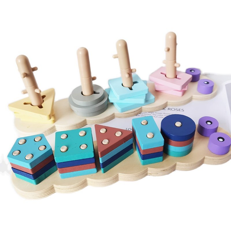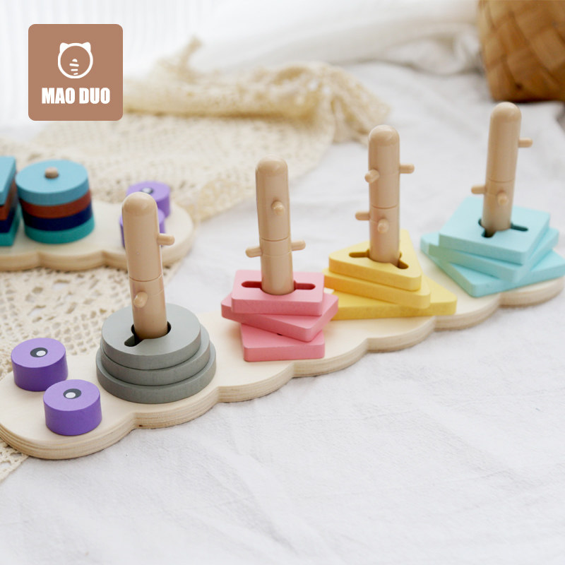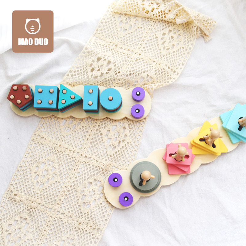 Geometric Sleeve Column Caterpillar Cave digital shape pairing 1-2-year-old 3 Mont's early teaching hand eye coordination toy children