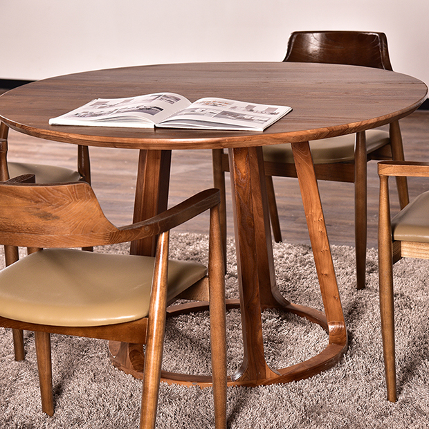 Nordic solid wood table full solid wood table imported dining table and chairs combined large round table brief European table iron art round table