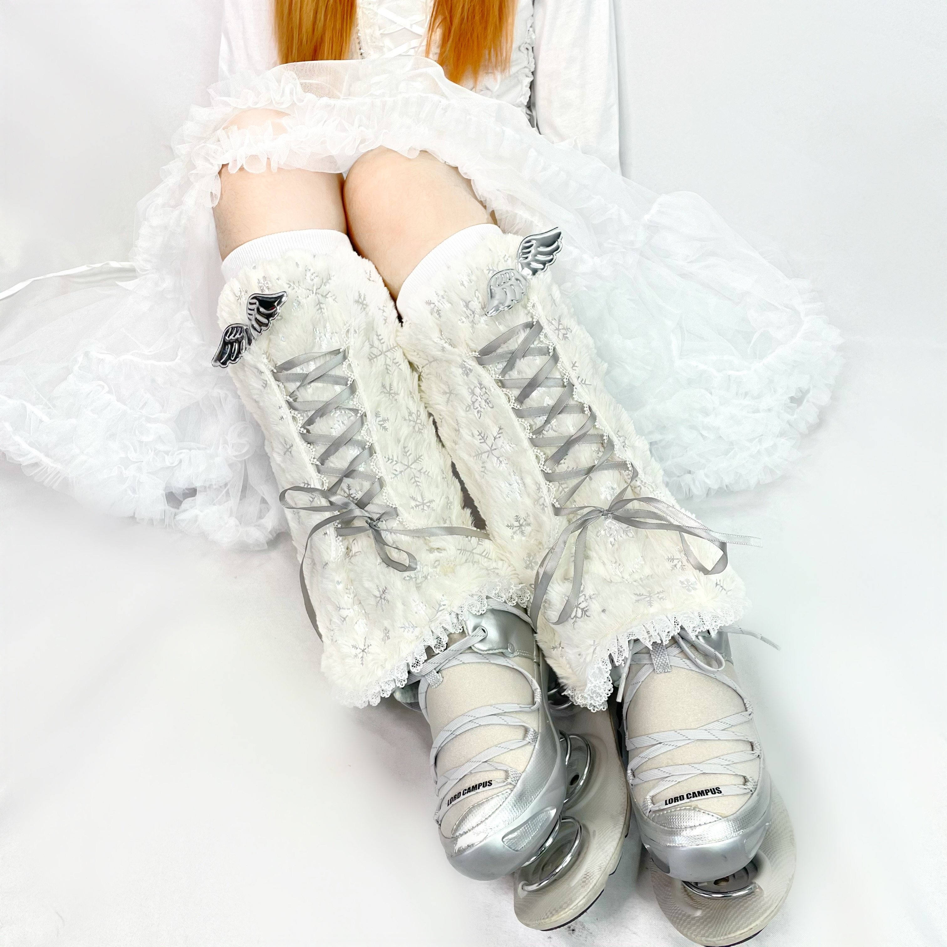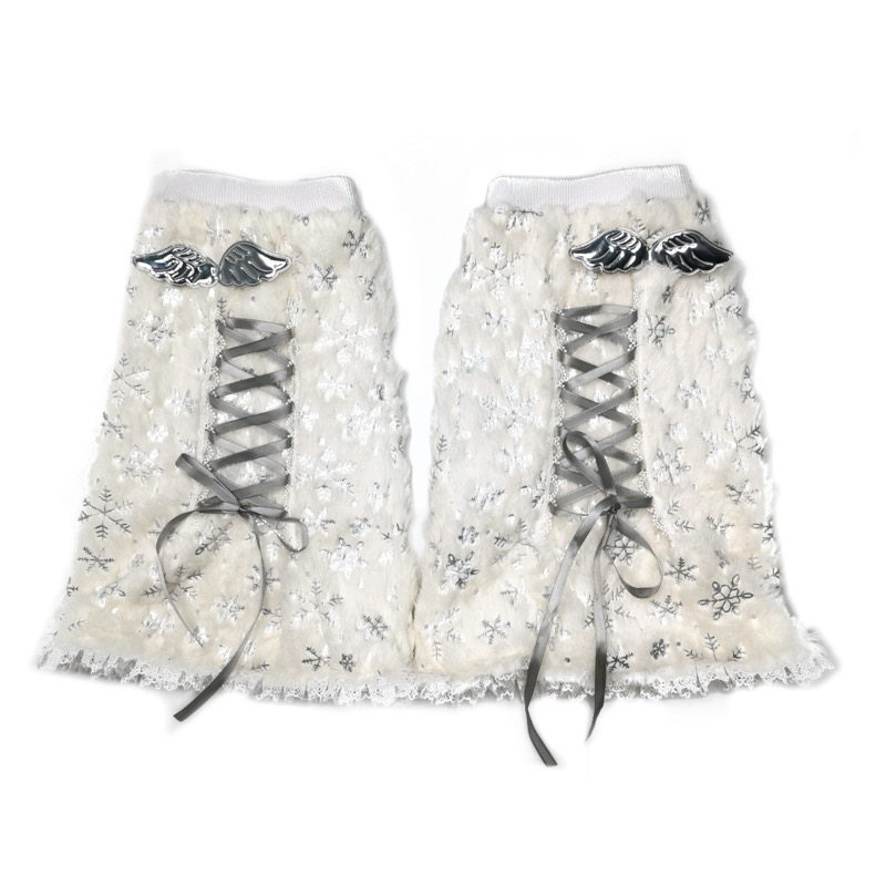 Broken bone Original Christmas Angel Wings Hot Girl Harajuku Strap Snowflake Furry Leg Socks Winter