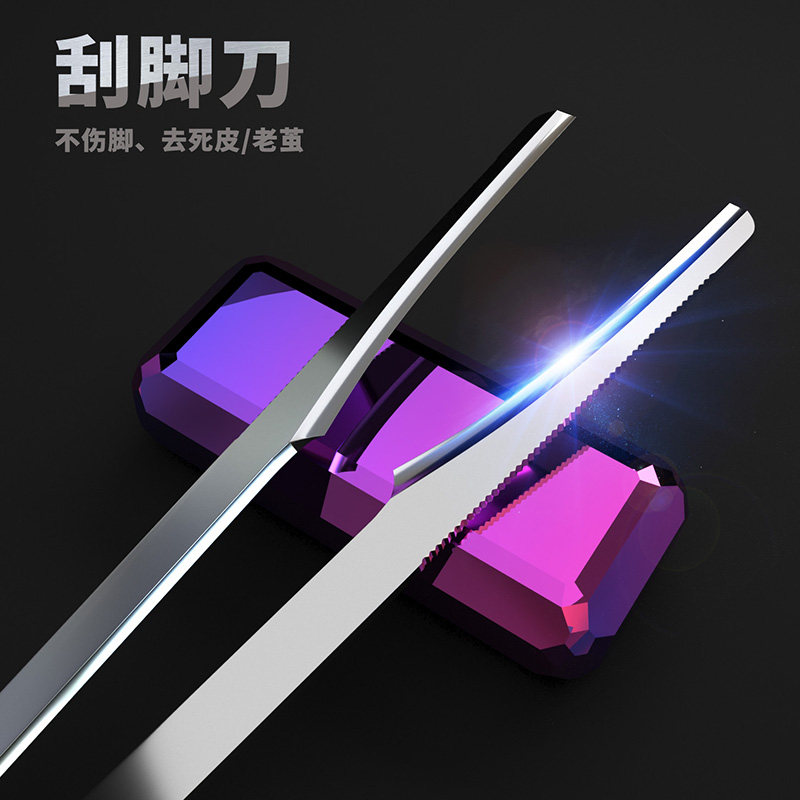 Pedicure knife professional technician uses a foot scraper to remove calluses and scrape feet skin knife scraping foot artifact to remove dead skin beauty salon