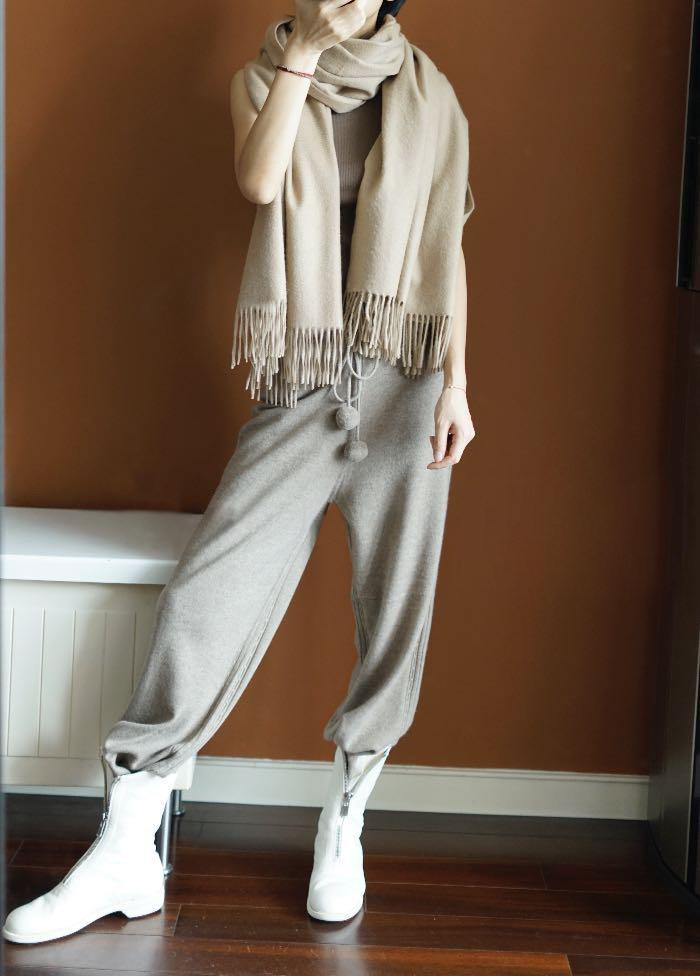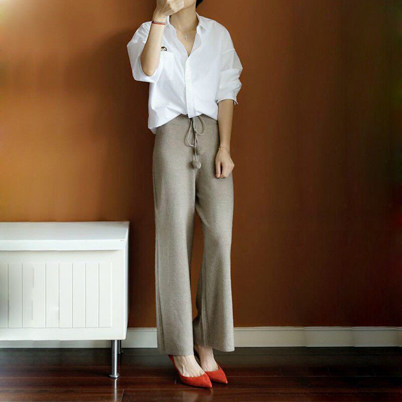 2021 Cashmere Broadlegged Pants Just Love This Soft Glutinous and Comfort Wool Pants Apricot outer wearing long pants Korean version