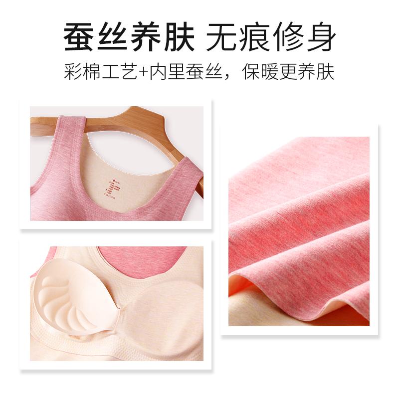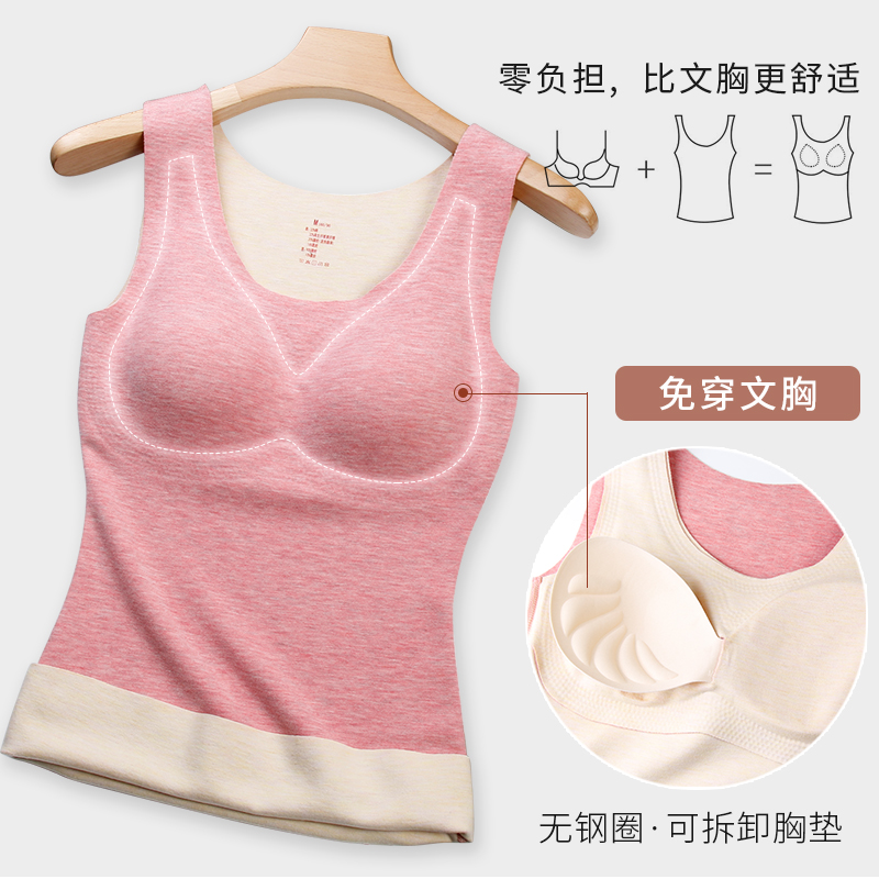 Silk delsuede with chest cushion Warm Vest Woman Autumn winter Nets with velvet thickened No-mark underwear Self-heating