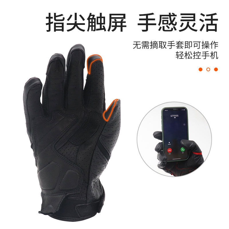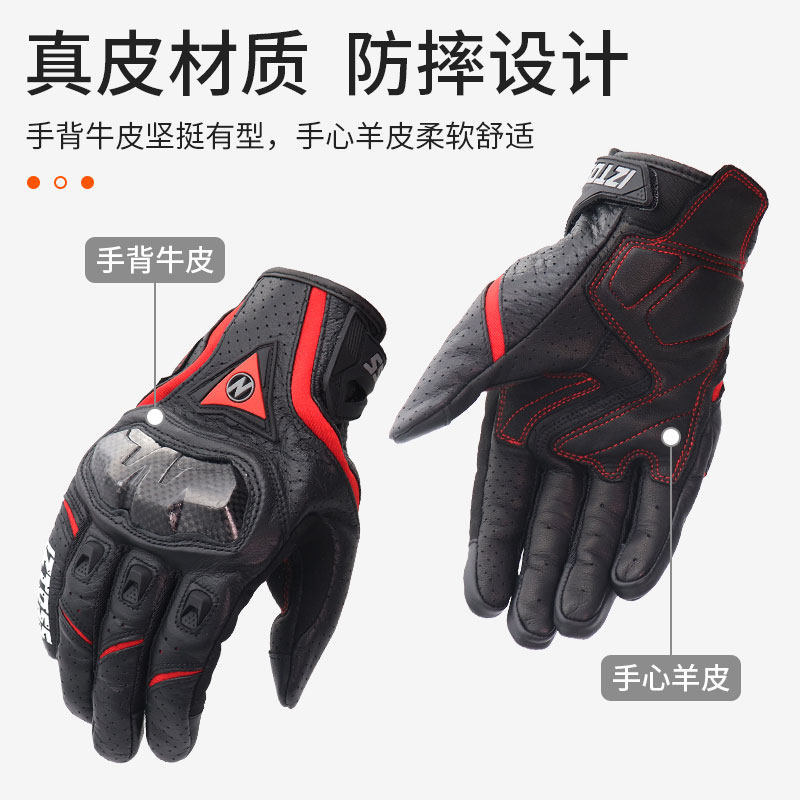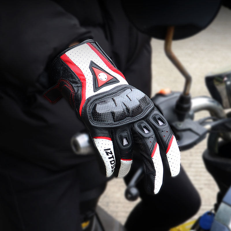 IZTOSS Locomotive Real Leather Gloves Carbon Fiber Locomotive Rider Equipment Racing Bike Riding Anti-Fall Male Spring Summer Breathable