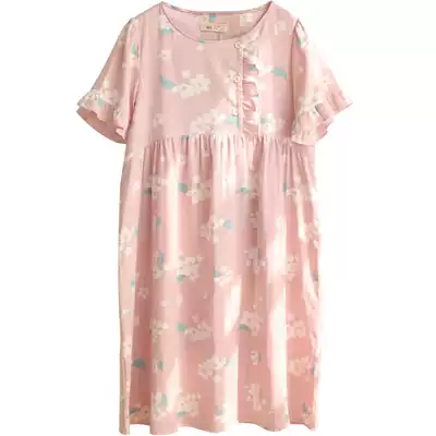 Spring and summer new Japanese nightgown women cotton short sleeve thin sweet floral loose cotton half sleeve home dress skirt