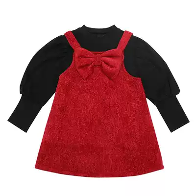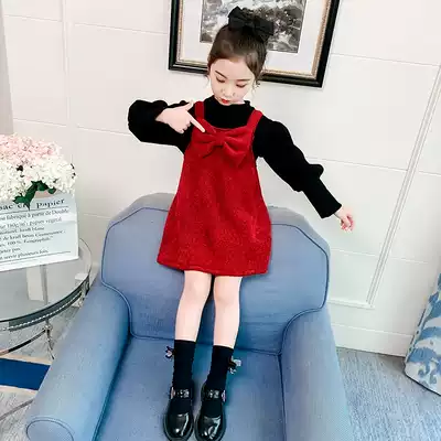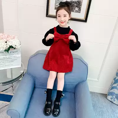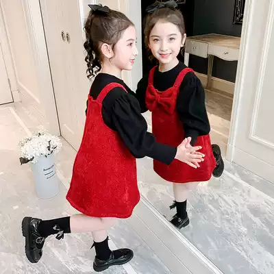 Girls ' Red dress Spring and Autumn plus velvet Western style female baby princess skirt Thickened New Year Clothes Skirt suit