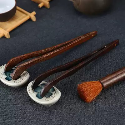 Pure copper tea clip Tea leaf tweezers Tea cup clip Bamboo wooden single Kung Fu tea set accessories Ebony