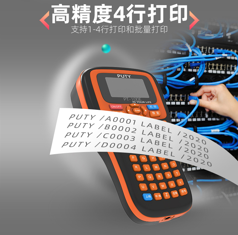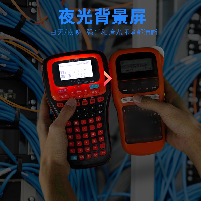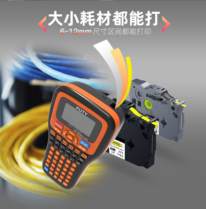 Pstick label machine PT-100E handheld portable power telecom adhesive Internet cable suitable e100b ribbon communication machine room Internet wiring home office barcode printing 12mm