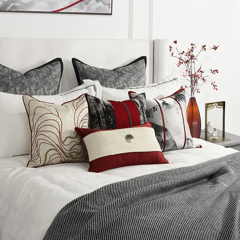 Red New Chinese style Style Board Room Bedding Upscale Villa Hotel Modern-style Room Bed Goods Light Extravagant Pillow