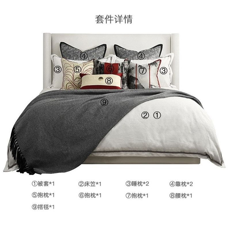 11 pieces (with full core) 4 pieces (with full core) lap blanket 140x240cm leaning pillow (with core) 60x60cm red ash holding pillow (with core) 45x45cm landscape hug