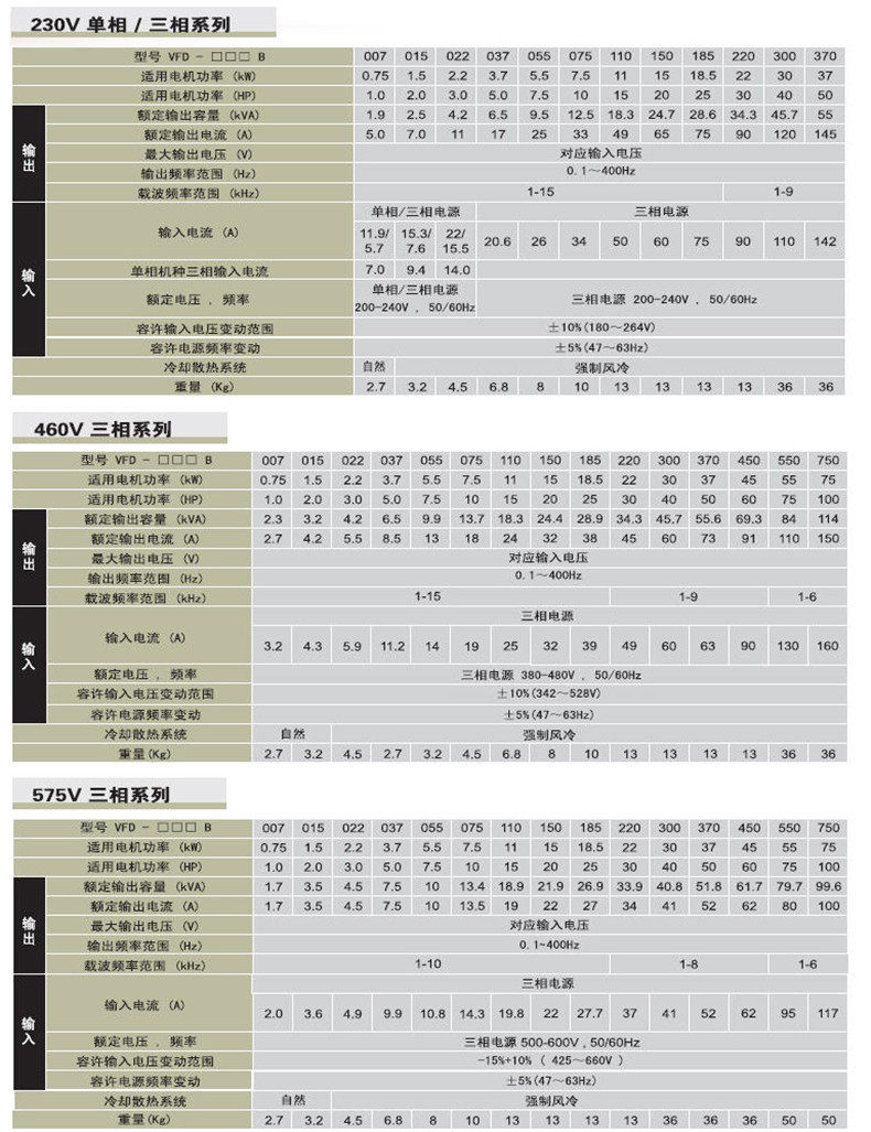VFD015B43A 380V 1 5KWVFD022B43B 380V 2 2KWVFD037B43A 380V 3