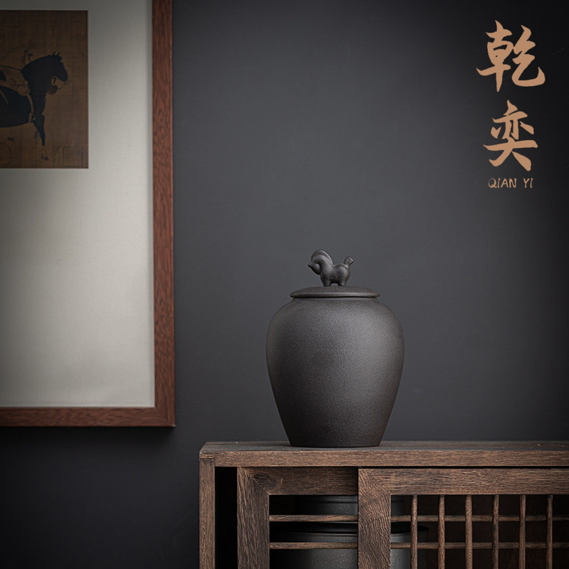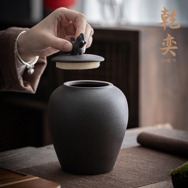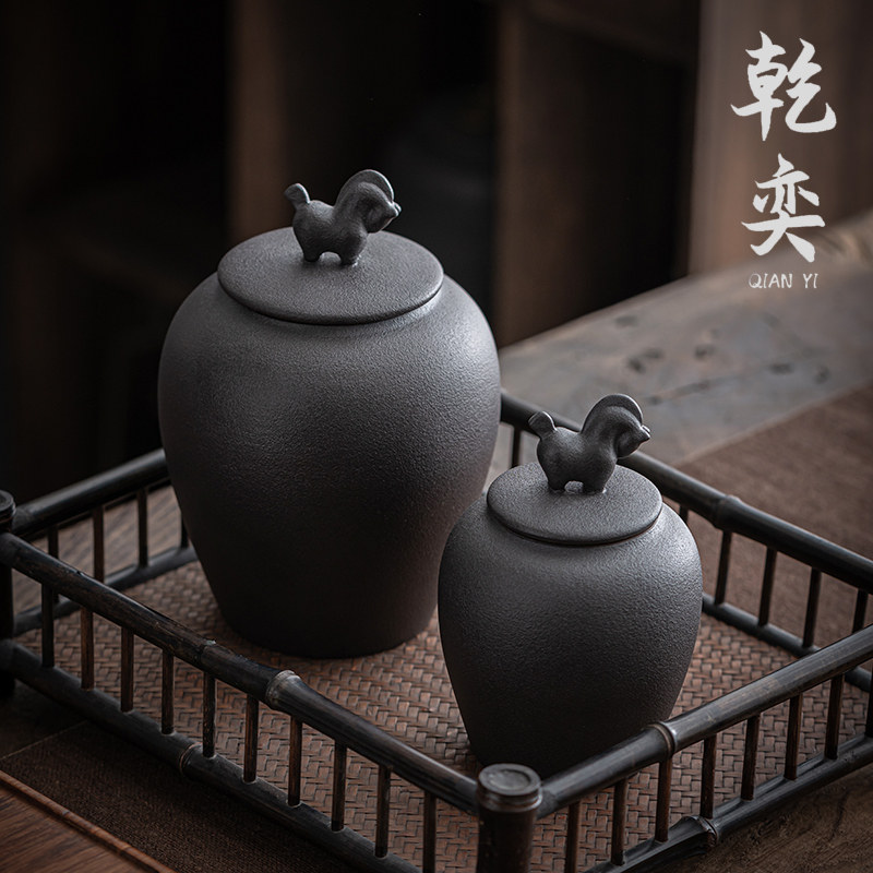 Japanese-style Tangma Rough Tea Can Seal Can Large Storage Tea Can Black Ceramic Ceramic Small Wake Tea Can Pu-yu