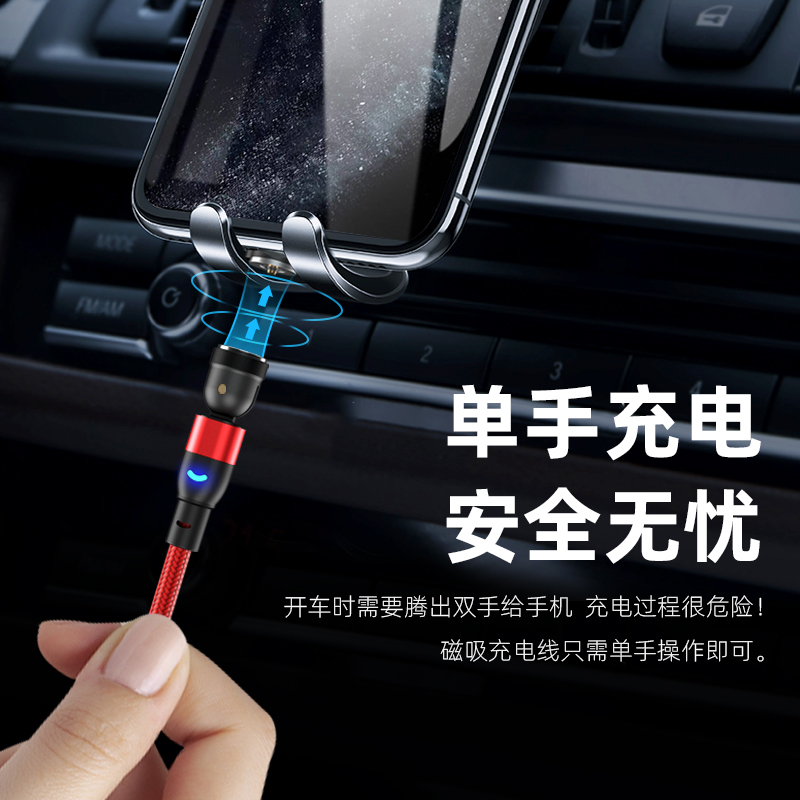 Rotation 2 m magnetic attraction data line applicable Huawei mobile phone magnetic Android typec apple vivo charger oppo fast charging and punching wire strong magnetic magnet type suction head one drag triple mobile charge line