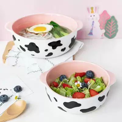 ezicok soup bowl Ceramic binaural bowl Household large bowl instant noodle bowl Japanese creative noodle bowl Cute noodle bowl Instant noodle bowl
