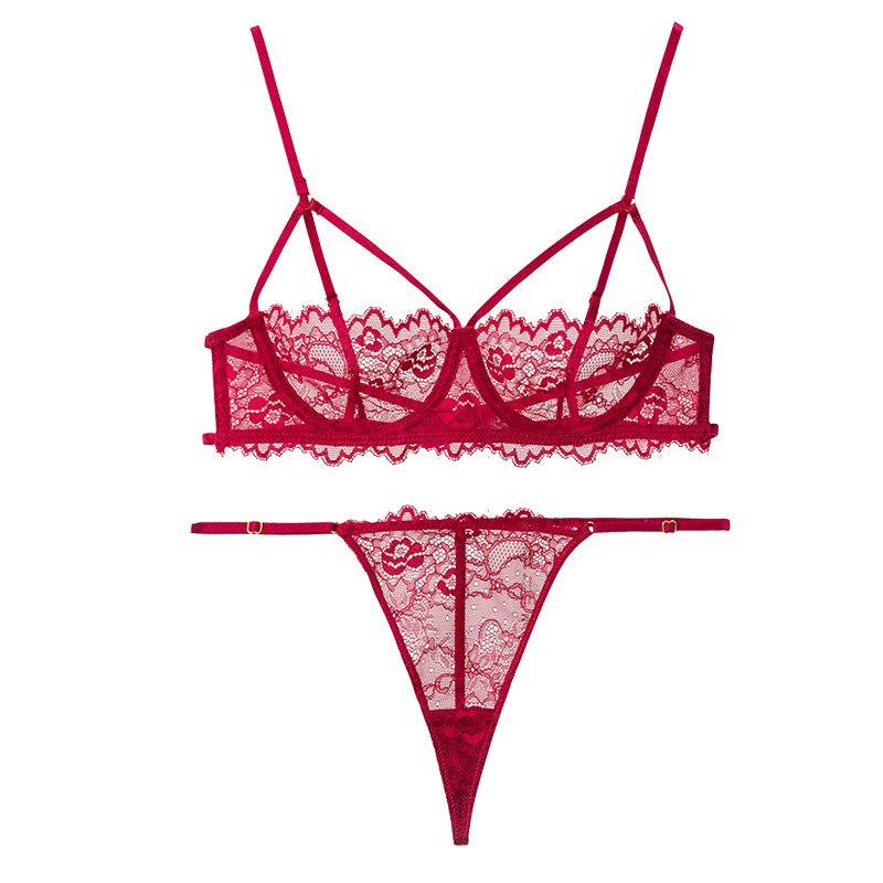 Sexy Lace Lingerie Clairvoyant Ultra Slim Underwear Suit Transparent Seductive Tints Pants Red Fire