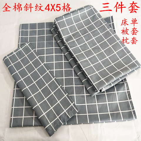 Cotton twill gray plaid single piece Student single dormitory bunk large gray lattice quilt set three-piece set