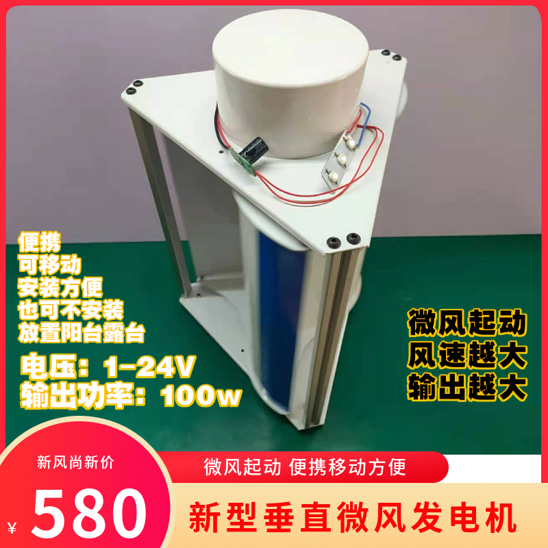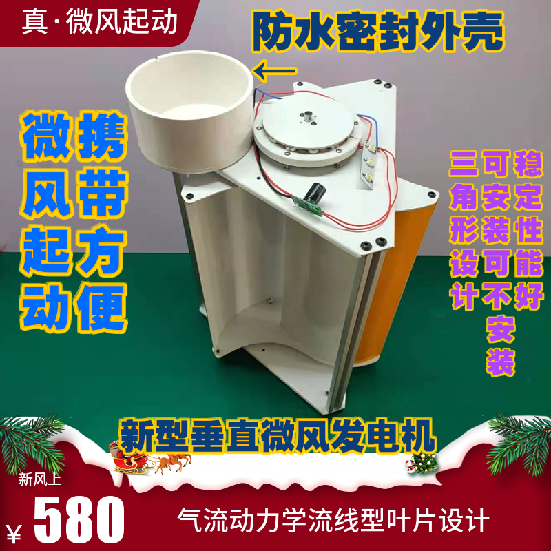Miniature vertical wind turbine Breeze start Discless coreless power generation Efficient outdoor portable camping