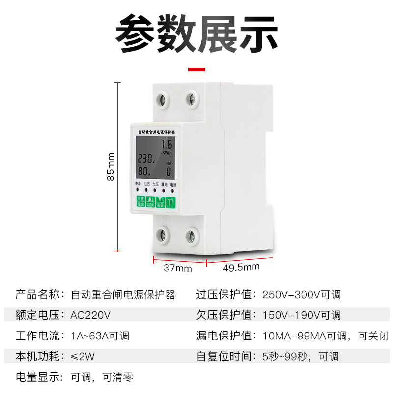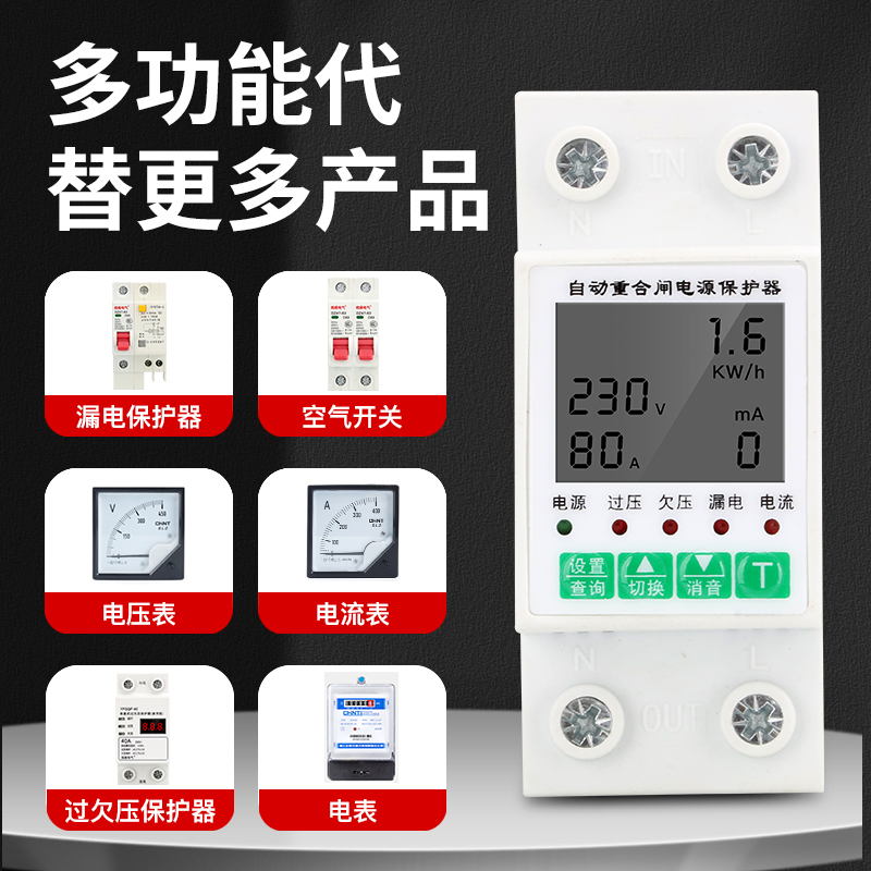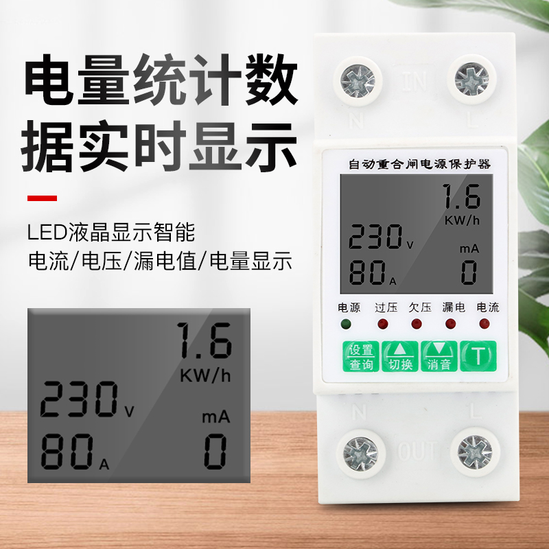 Self-recovery over-under-voltage leakage intelligent reclosing over-current overload lightning protection device household metering energy meter