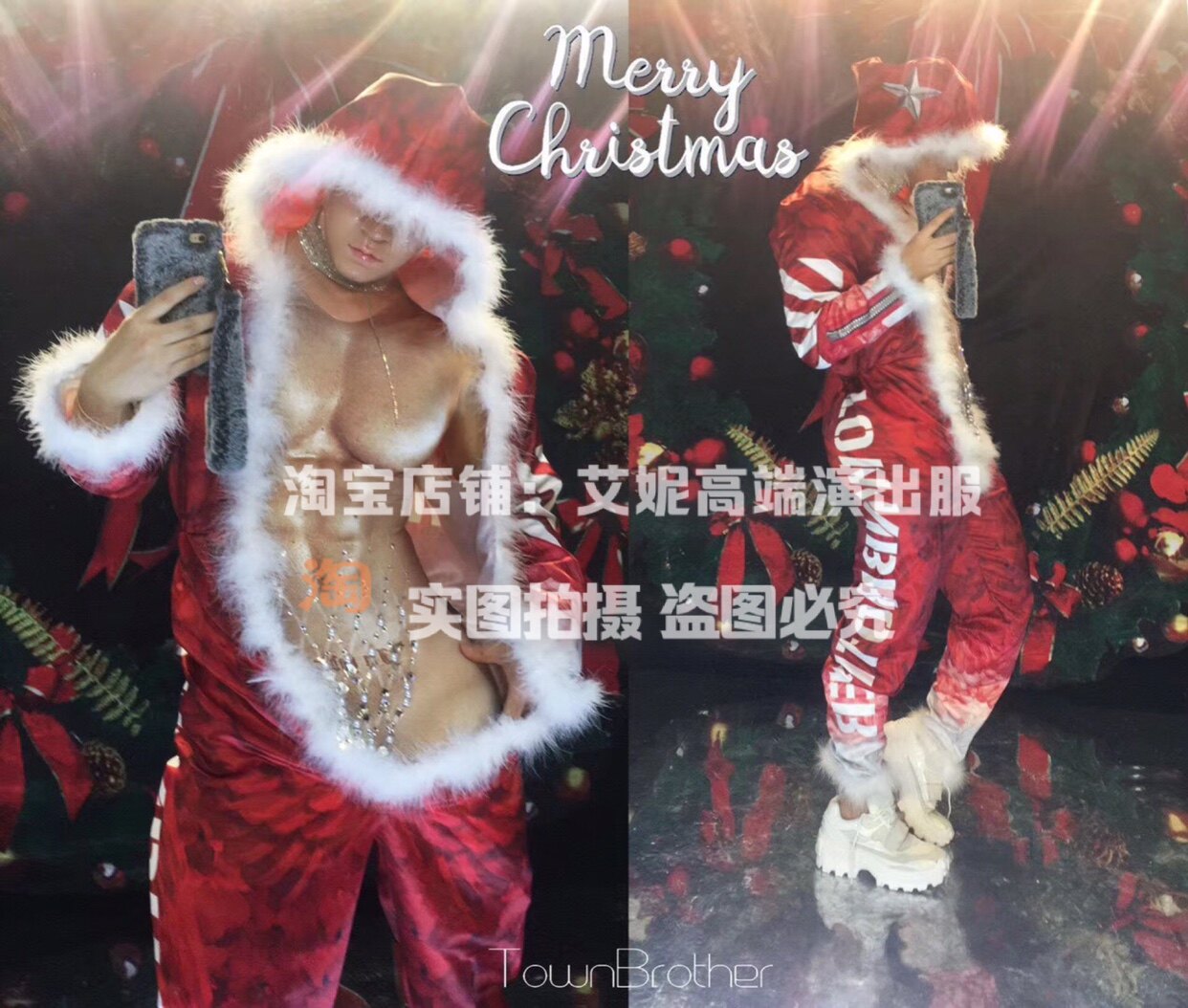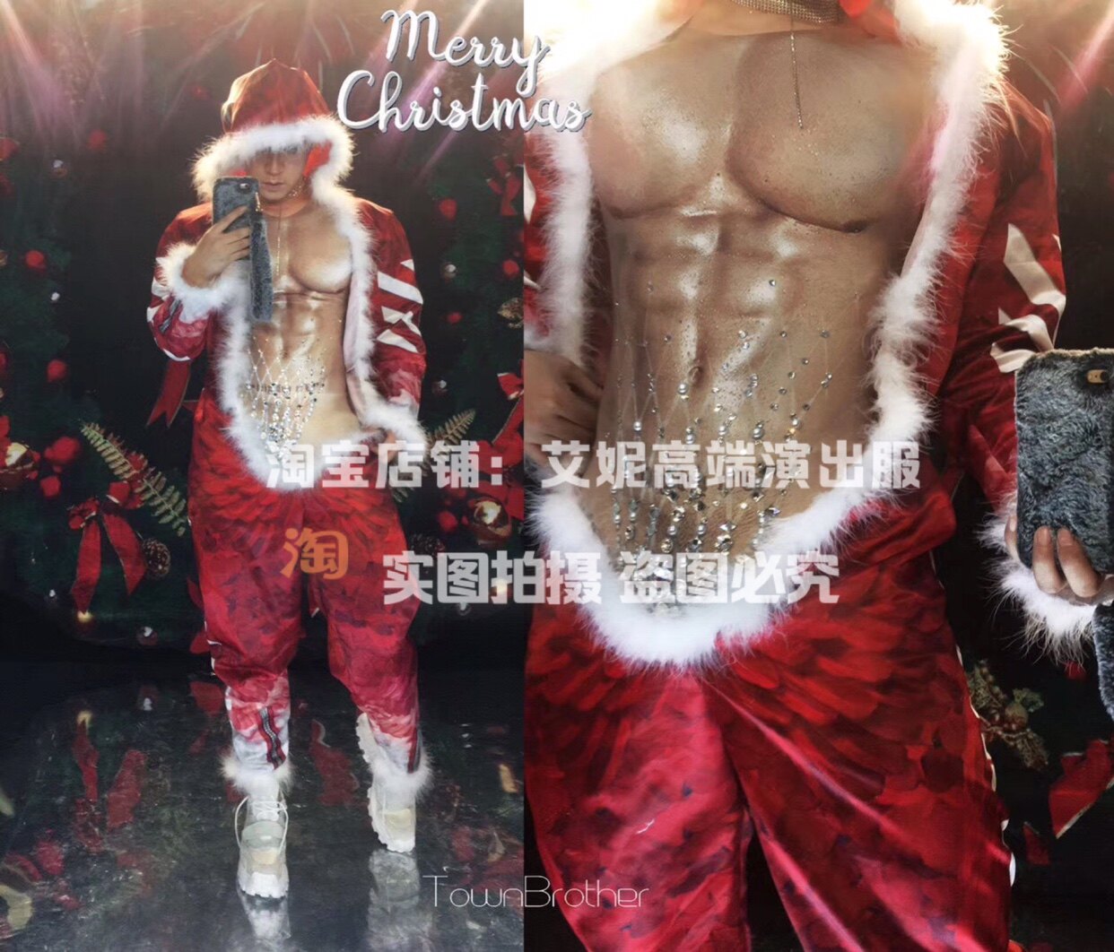 TT High-end Nightclub Bar Singer Djds Dance Team Gogo Christmas Red Male's Fake Dew meatpants with long pants