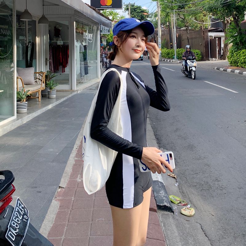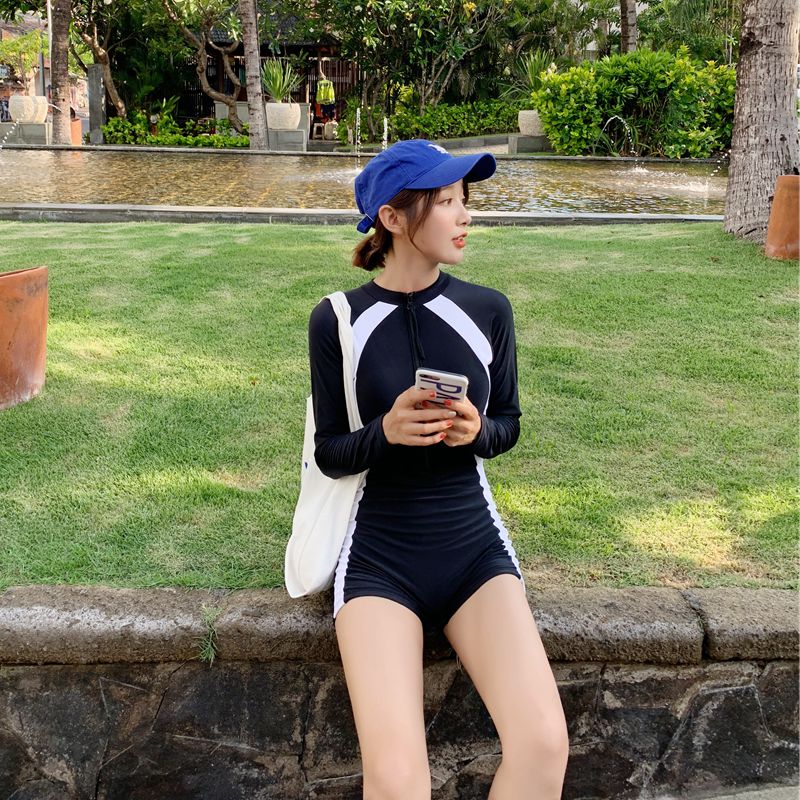 Swimsuit 2020 new one-piece long-sleeved flat-angled belly-covering slim Korean ins conservative student sports swimsuit