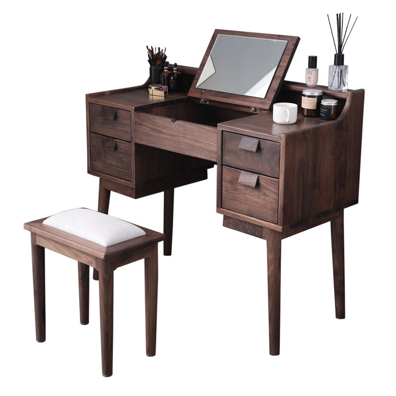 Nordic ins Makeup Bench Light Lavish Black Walnut Wood Modern Minima Bedroom Small Family Type Daily Solid Wood Makeup Table