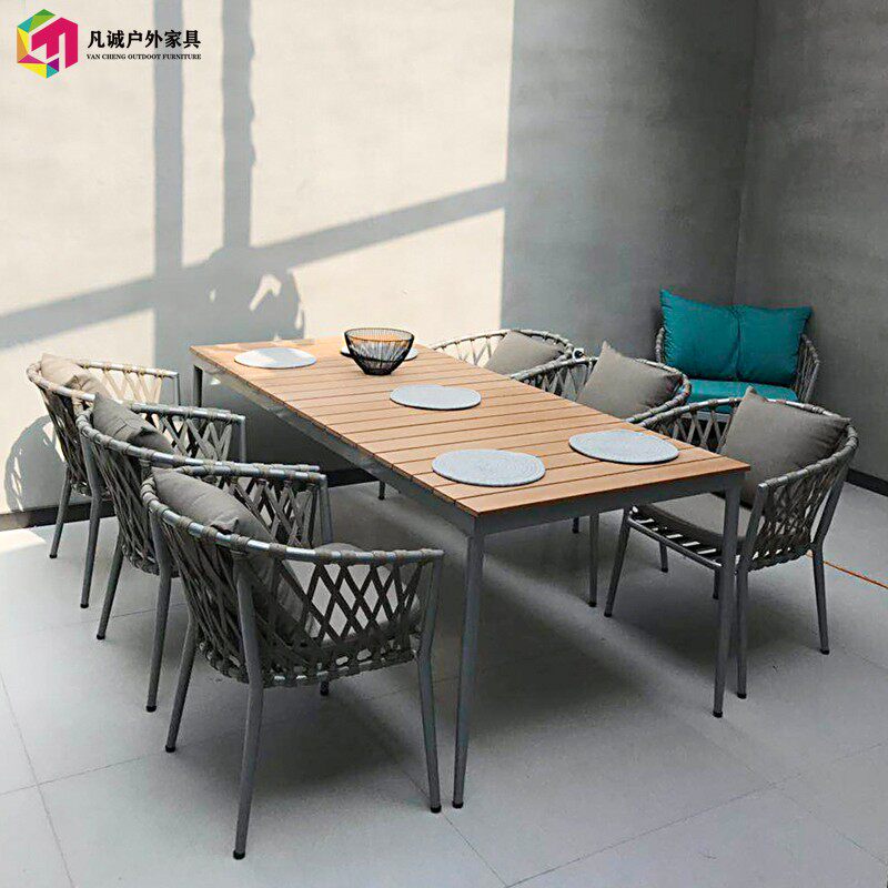 Outdoor table and chairs courtyard open-air dining room outdoor rattan chair designer rattan villa garden hotel patio furniture