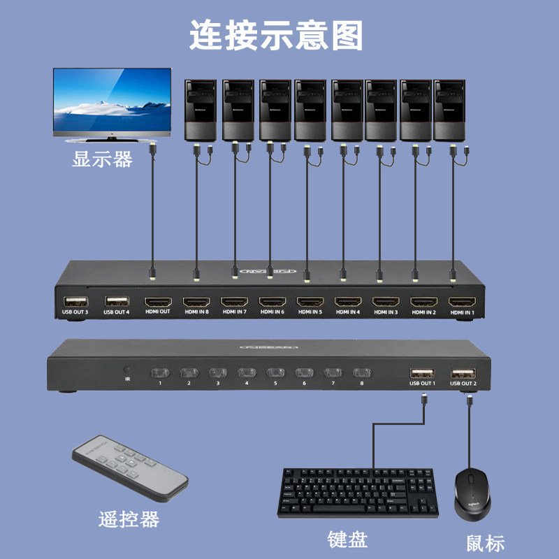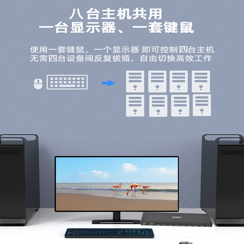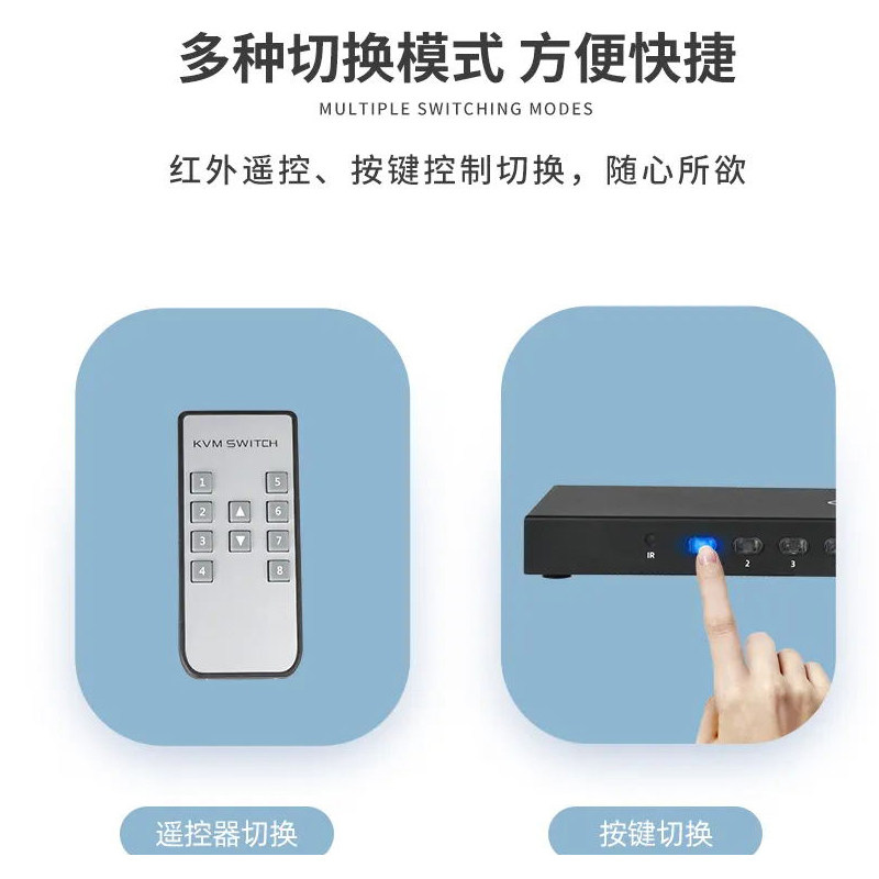 kvm switch 8 port 4K HDMI switch remote control switch 8 computer host DVR share 1 set keyboard mouse monitor USB printer sharer
