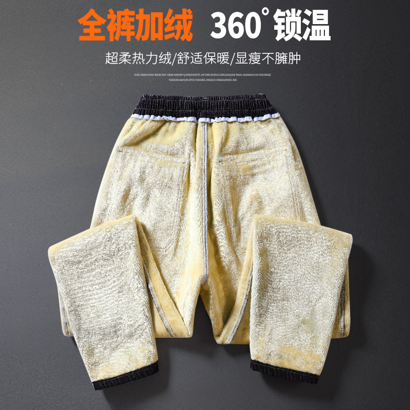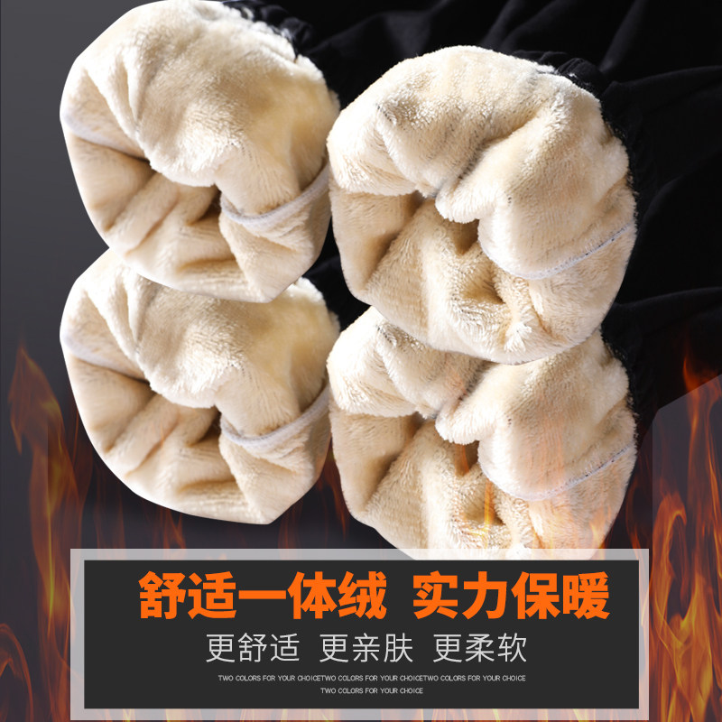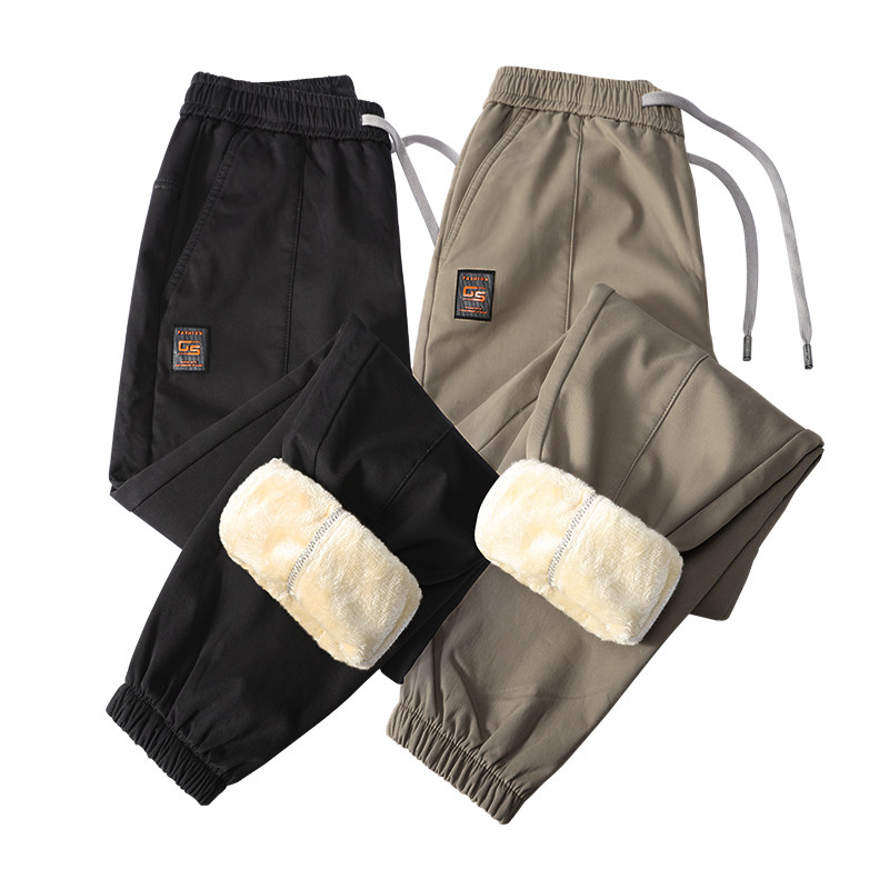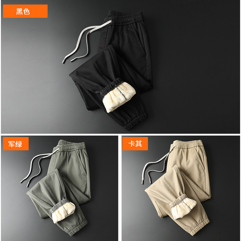 Tide Cards Autumn Winter Plus Suede Thickened Men's Pure Cotton Casual Pants Han Edition Loose Beam Feet Warm Elastic Waist Work Pants