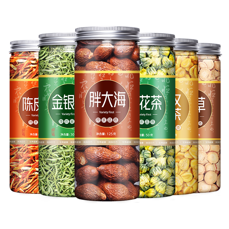 (1 can) Fat Dahai (1 can) Honeysuckle (1 can) Fetal chrysanthemum (1 can) Luo Han Guo (1 can) dried tangerine peel (1 can) Licorice (2 cans) Fat sea honeysuckle (2 cans)