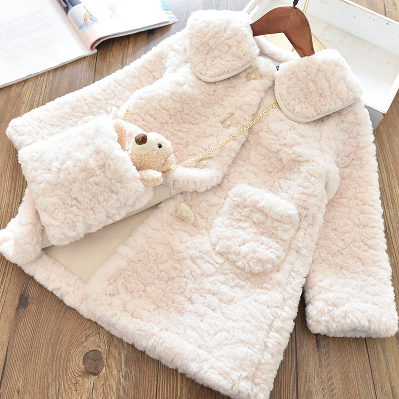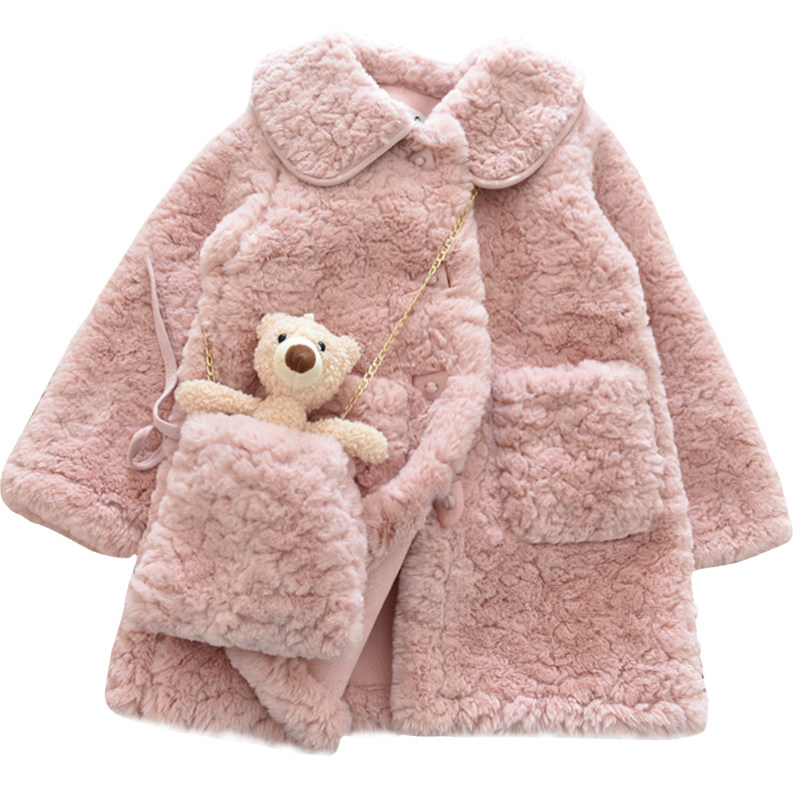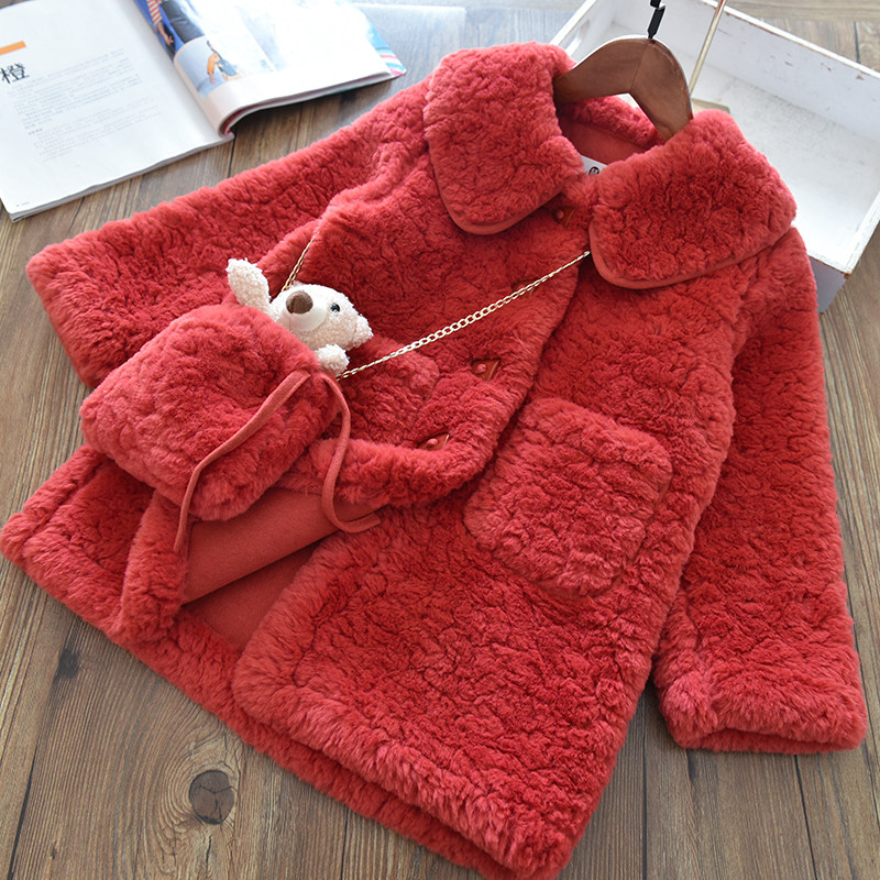 Girls Winter Costume 2022 new baby lamb hair children's gas long - stained coat tide
