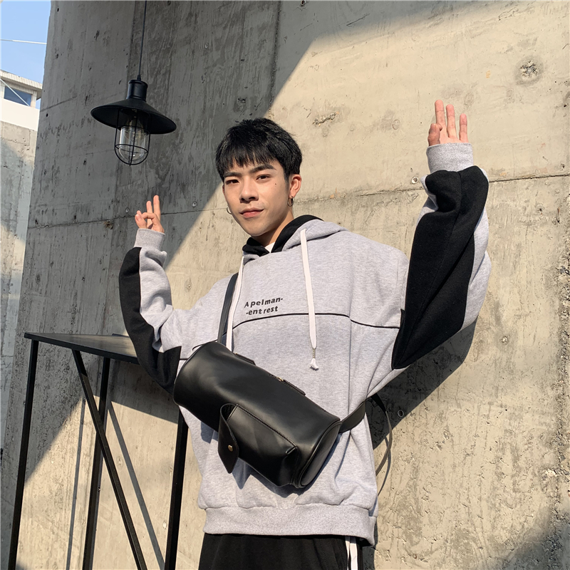 New retro fashion Korean version casual chest front bag street bull leather single shoulder bag individuality cylinder phone riding satchel-Taobao