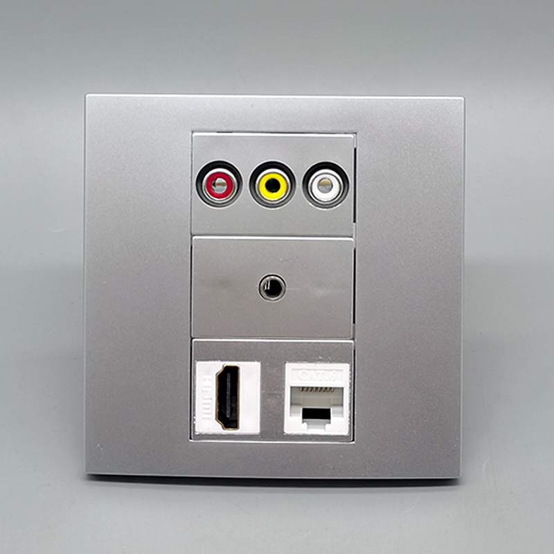Silver-gray 86-type HDMI straight plug-in six types of network Gigabit 3 5 headphones red, yellow and white lotus audio and video docking