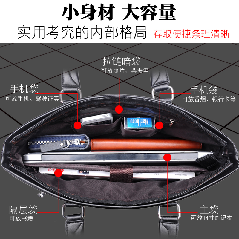 Lesen Kangaroo Hand Man Genuine Leather Business Boutique Men's Leisure Cross Section Brief Work Briefcase Bull Leather Satchel