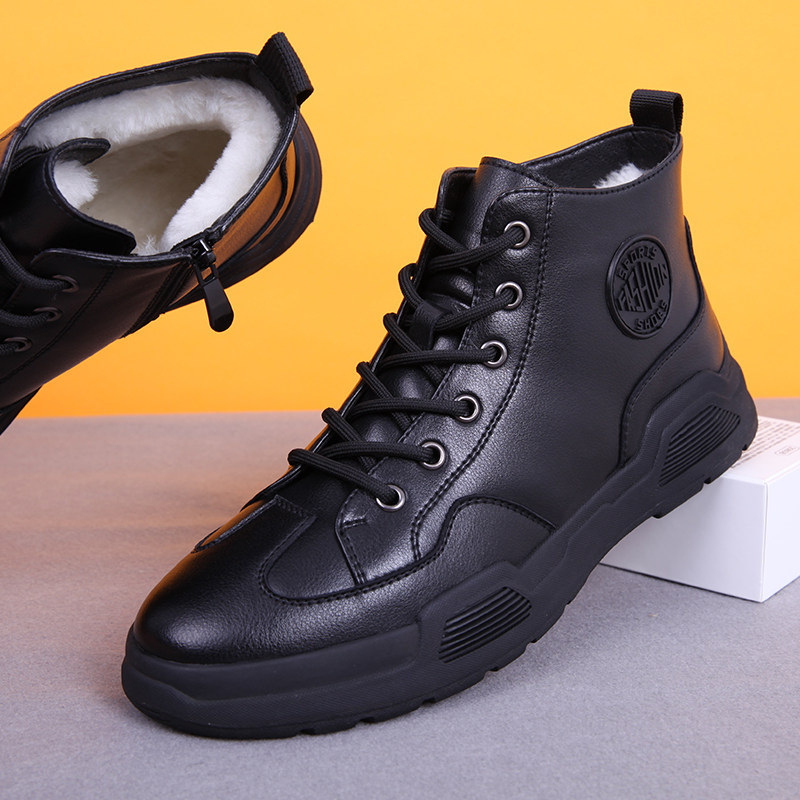 Tide men's cotton shoes plus heating shoes thickened high gang spring 2023 new snow boots men's fur