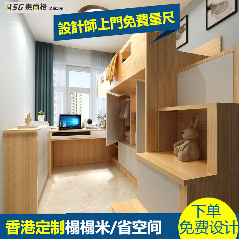Huisange Hong Kong children's room custom-made multi-functional double-layer up and down staggered bed custom-made locker wardrobe custom-made