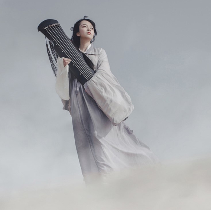 New Chinese style costume photography props guqin small guzheng retro photo props lyre performance props
