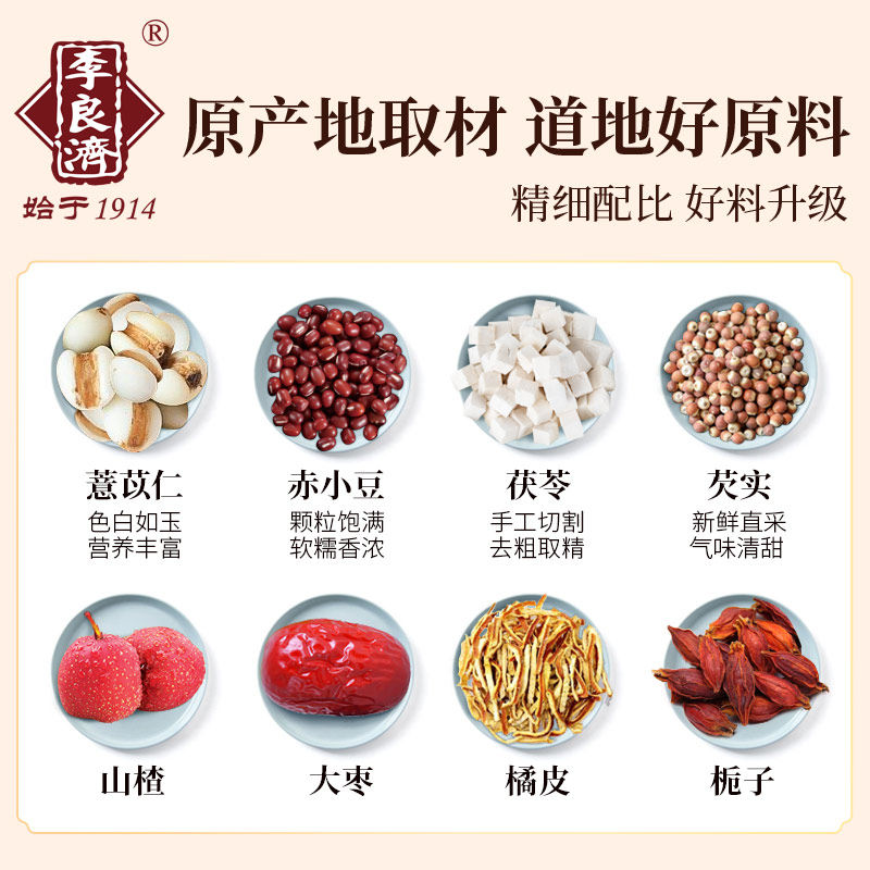 Red beans, coix seed, jujube, orange peel, winter melon, hawthorn, Poria cocos, water chestnut, gardenia, osmanthus